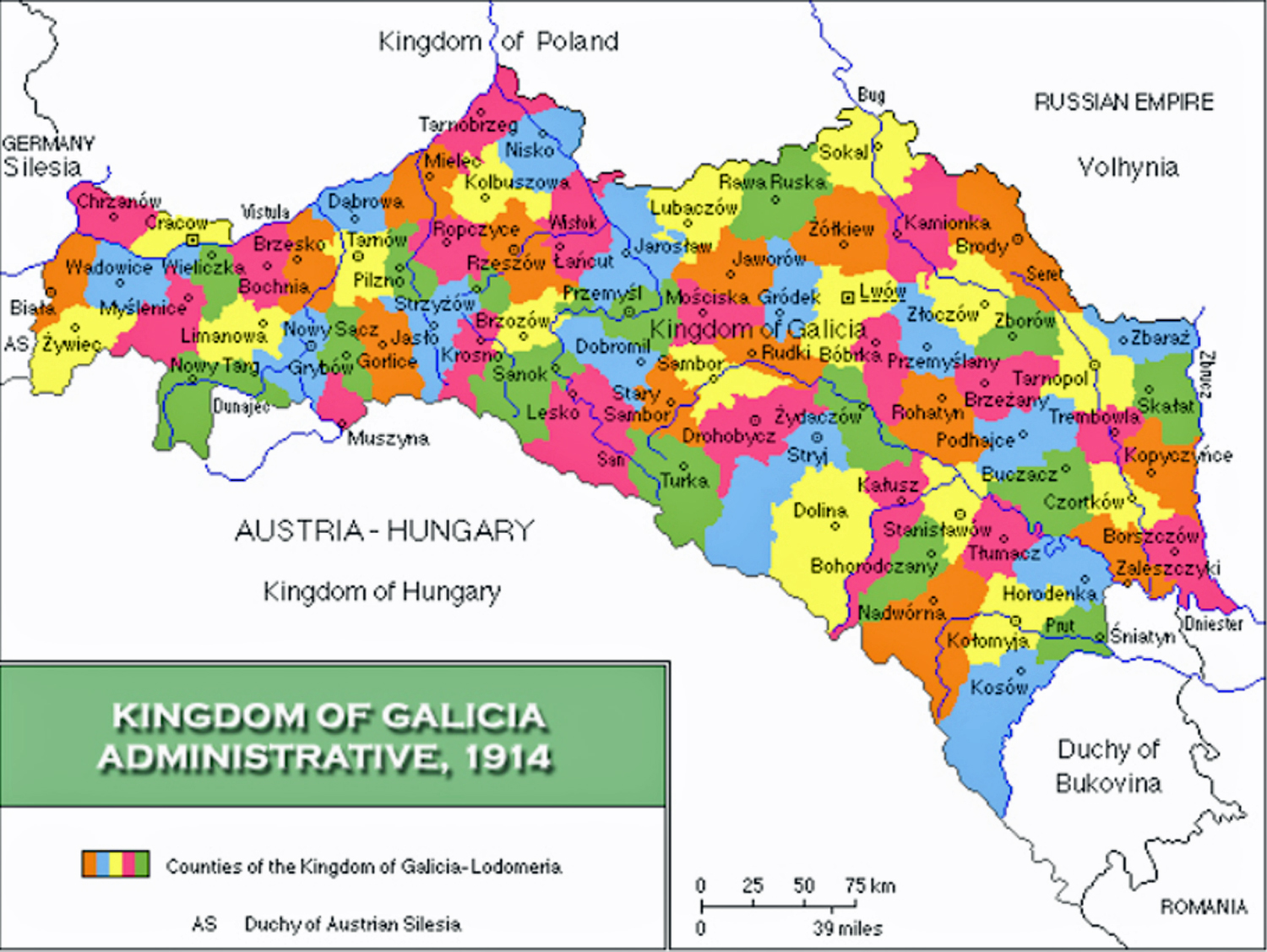 Kingdom of Galicia, Administrative Regions, 1914