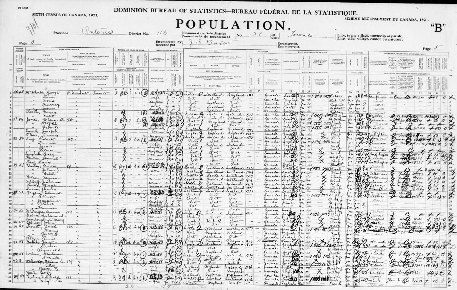 1921 Census Record of Edward Thomas Griffin and household