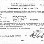 Certificate of Arrival of Ann Kondratiuk (1906–1978)