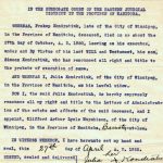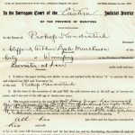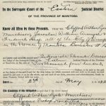 The family then arranged to appoint their lawyer, Clifford Murchison of the law firm Heap, Arsenych and Murchison, to replace Simeon as Prokop’s executor. On April 27, 1922 Prokop’s widow, Julia Macuira Kondratiuk, renounced her claim to the estate and nominated Mr. Murchison as her husband’s executor. On May 2 Mr. Murchison applied to the Surrogate Court of Winnipeg for probate. The court application included the following documents: