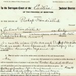 - Application for Administration with a Will stating that Prokop had died and left a will; that Simeon was named in the will as executor but had renounced; that Mr. Murchison was the appointee of Prokop’s widow; and that the estate was valued at $1,200