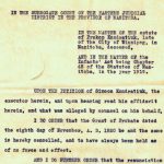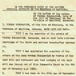 - Affidavit of Survivors swearing that Prokop’s survivors were Julia, his widow, and Simeon, his only child! Julia probably committed perjury when she signed this affidavit unless Prokop’s three daughters were not considered his children under Manitoba estate law. (Julia was illiterate so relied on others to tell her what she was signing)
